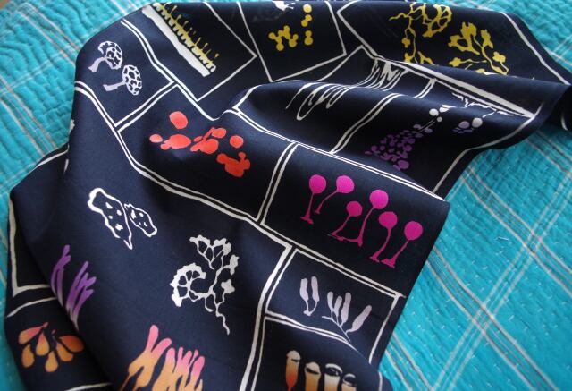 美しい粘菌たちへの驚きと共に、明治の偉人、南方熊楠へも捧げた粘菌手ぬぐいです。