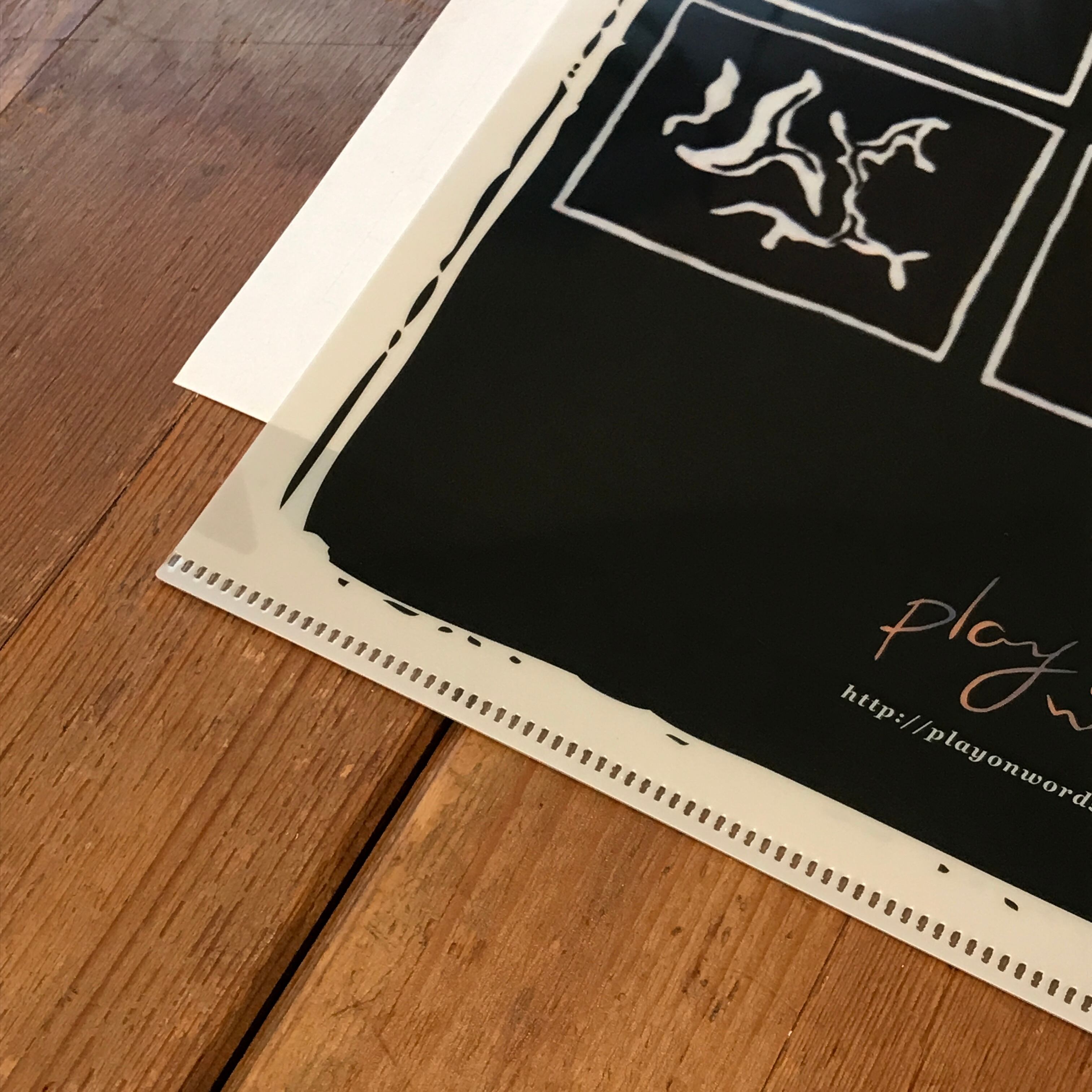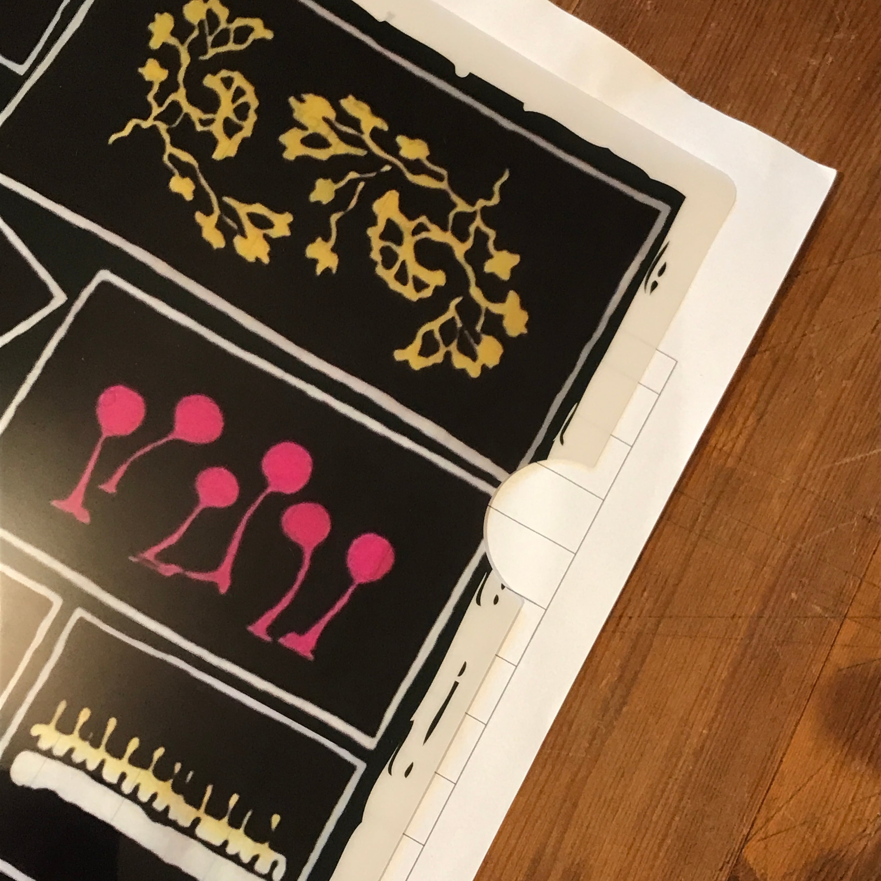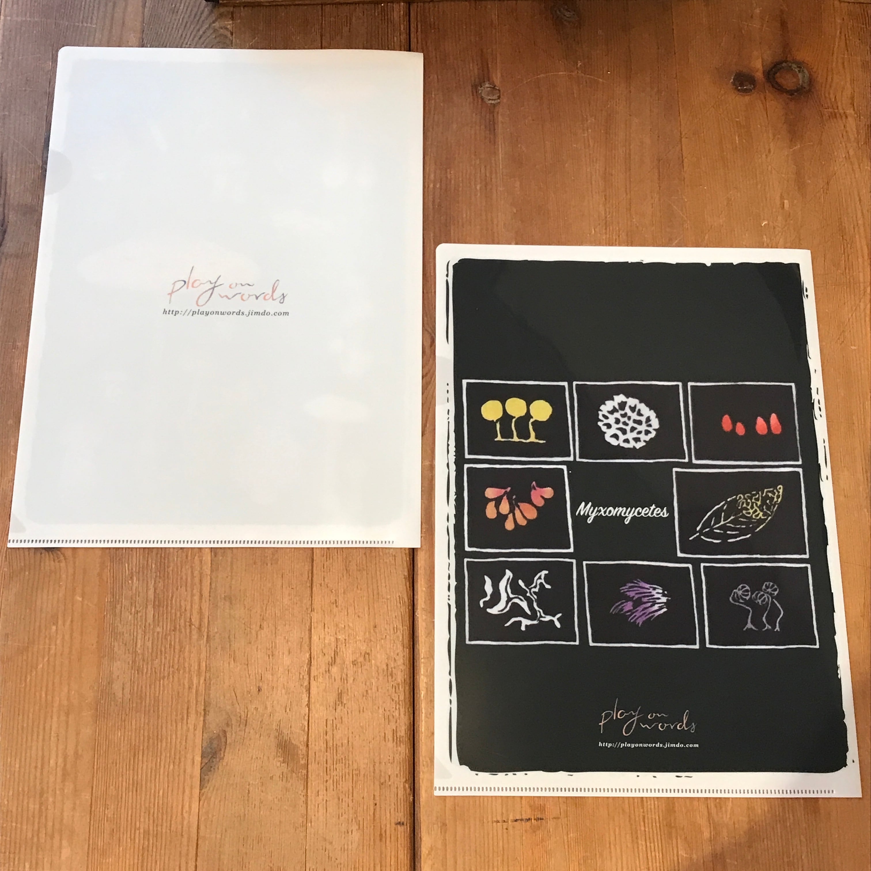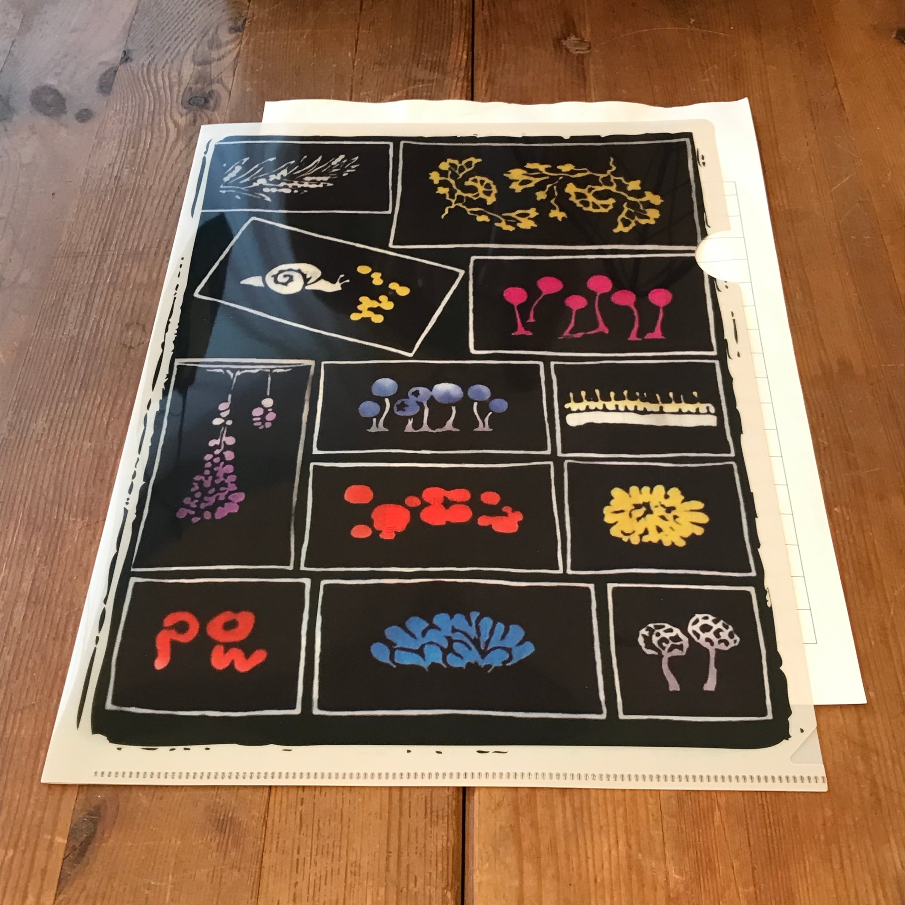 人気の手ぬぐい、粘菌尽くしの柄を元にして作ったクリアファイル。