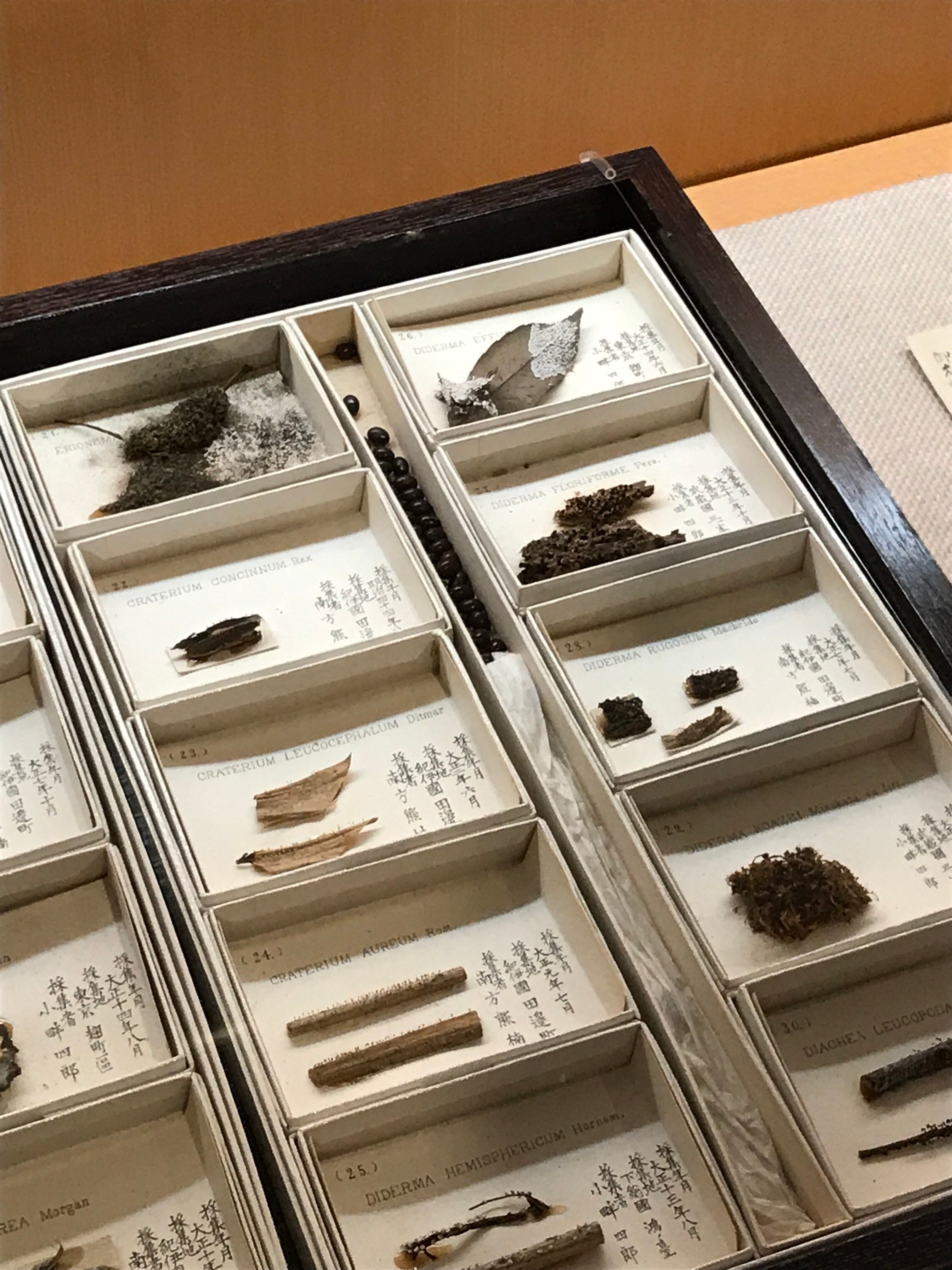 標本箱の中に収められたのは、どれも粘菌(変形菌)の子実体。