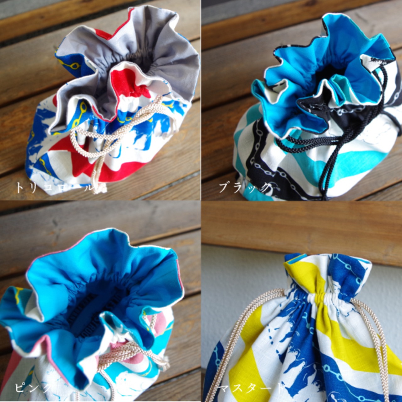 マチ付きのころんとしたフォルムの巾着です。