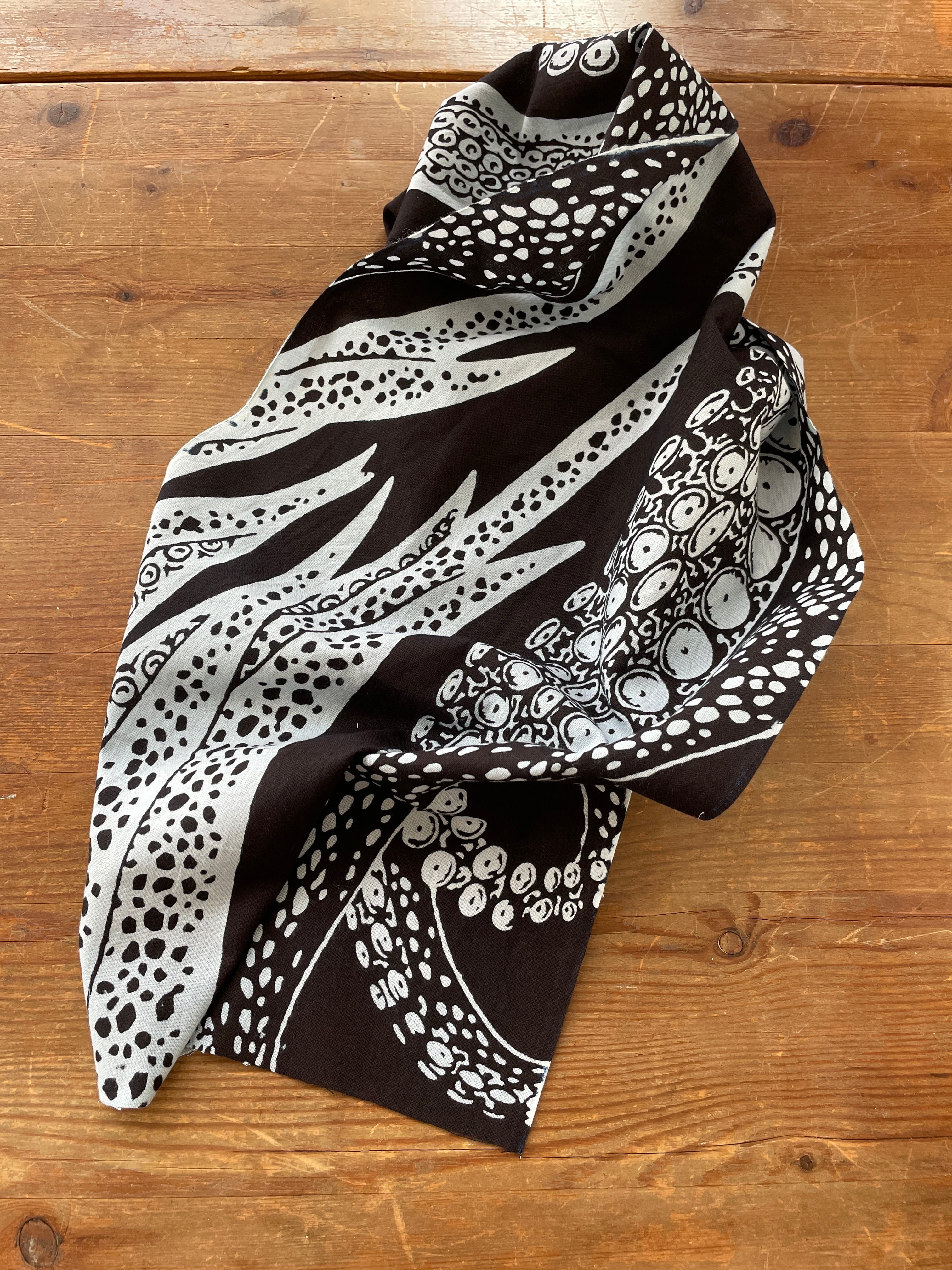 ガリ版手ぬぐいでも人気というタコの腕を、さらに進化させたデザインです。